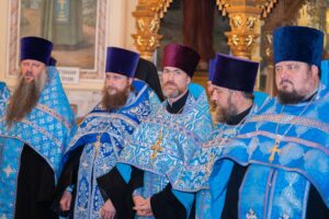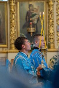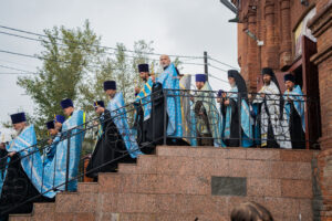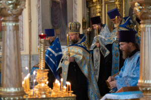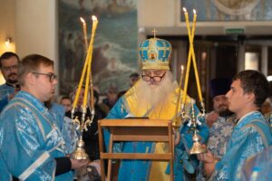 31 августа в Покровском кафедральном соборе Барнаула состоялось торжественное богослужение — чин Погребения Божией Матери. Богослужение возглавил митрополит Барнаульский и Алтайский Сергий в сослужении духовенства епархии.