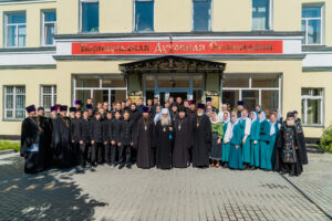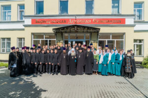 По окончании Литургии были совершены молебен на начало учебного года и лития по почившим наставникам. Богослужение украсили совместным пением хор Регентской школы под управлением Джамили Сергеевны Прохоровой и мужской хор семинарии под руководством иерея Димитрия Котова.