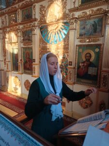 В этом учебном году руководить хором за богослужением будут воспитанницы 3 и 4 курсов: Буравлева Нина, Рослякова Дария, Петрушова Фаина и Убонова Екатерина. Студентки 2 и 1 курсов будут петь и читать.